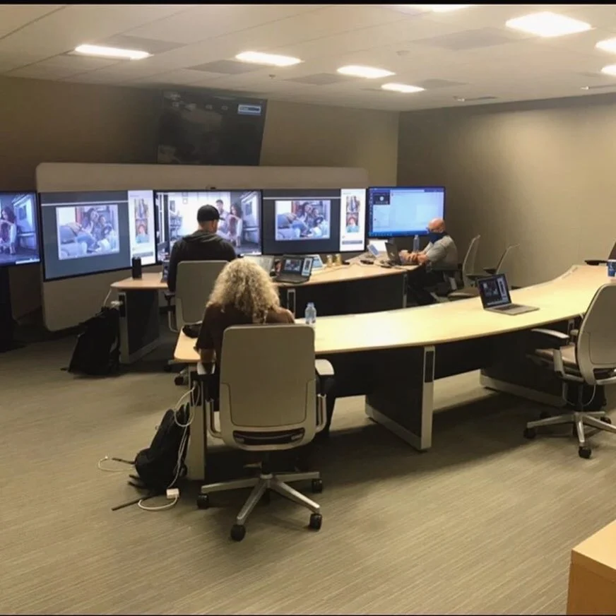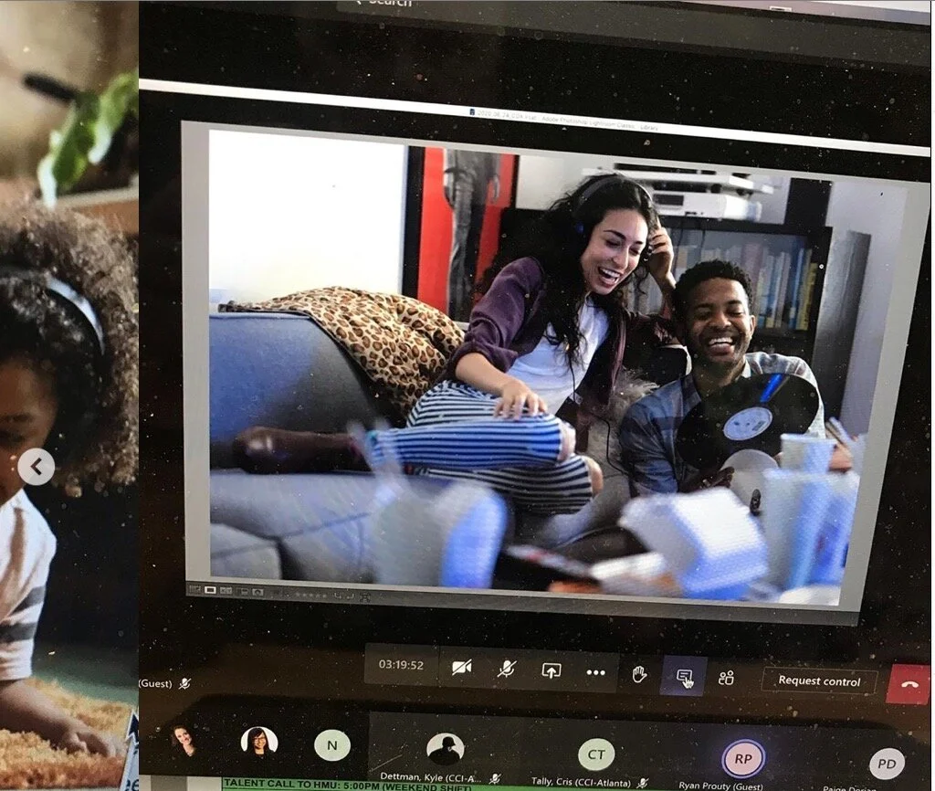 “We turned a teleconferencing room into mission control and are having a blast in our masks directing our week long LA shoot from 2200 miles away. Big props to @sirfenn and @paigedorianproductions for bringing the magic.”